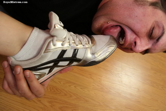 her dirty shoes, stinky socks and bare feet with his tongue.