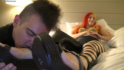 Stella's slave can't stop worshiping her feet even when she is sleeping.